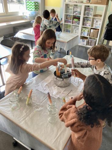 Schon jetzt ist das Zirkusfieber im Schulhaus spürbar. Aus den Klassenzimmern dringen Zirkuslieder, die Gänge werden mit Clowns, Zirkuswagen und Luftakrobatinnen geschmückt, und alle Klassen sind mit Feuereifer daran, Artikel für einen Verkauf herzustellen. Die Schülerinnen und Schüler kreieren Schlüsselanhänger, Badesalz, farbige Kerzen, Indiacas und Clownküsse. Diese bunte Pallete wird von der Klasse 4d an Ständen vor den Grossverteilern verkauft . Denn eine Zirkuswoche ist teuer. Sie kostet mehr, als die Eintritte zu den Vorstellungen einbringen. Die Kinder wissen, dass die Zirkuswoche nur stattfinden kann, weil jedes einzelne etwas dazu beiträgt. In der Projektwoche selbst entstehen dann noch Programmhefte, die vor den Vorstellungen verkauft werden.