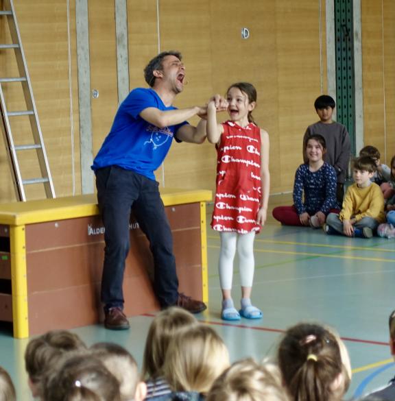 Damit alle sehen, was sie erwartet, war Tommy zu Besuch. Der Lust und Laune versprühende Artist des Zirkus Balloni zeigte sehr eindrücklich und unter lautem Gelächter von Kindern und Lehrpersonen, welche Ateliers zur Wahl stehen.