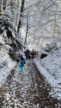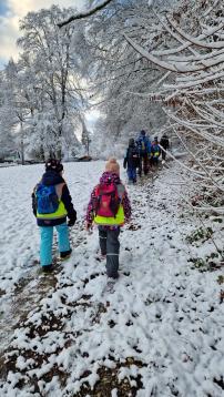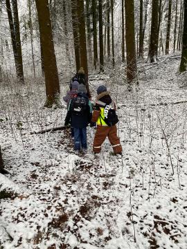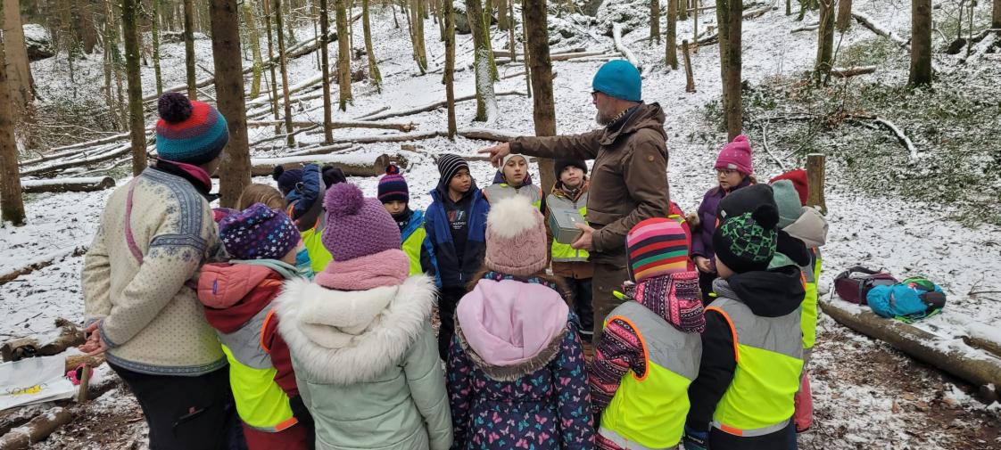 Warm eingepackt und mit einer Thermosflasche ausgerüstet, verbrachten alle Erstklassen diesen Winter einen Morgen im Wald. Organisiert wurde dieser Ausflug von Herrn Jürg Rüfenacht, welcher seit 2022 im Schulhaus Altenburg unterrichtet und im selben Jahr den «CAS in Naturbezogener Umweltbildung» abgeschlossen hat.
